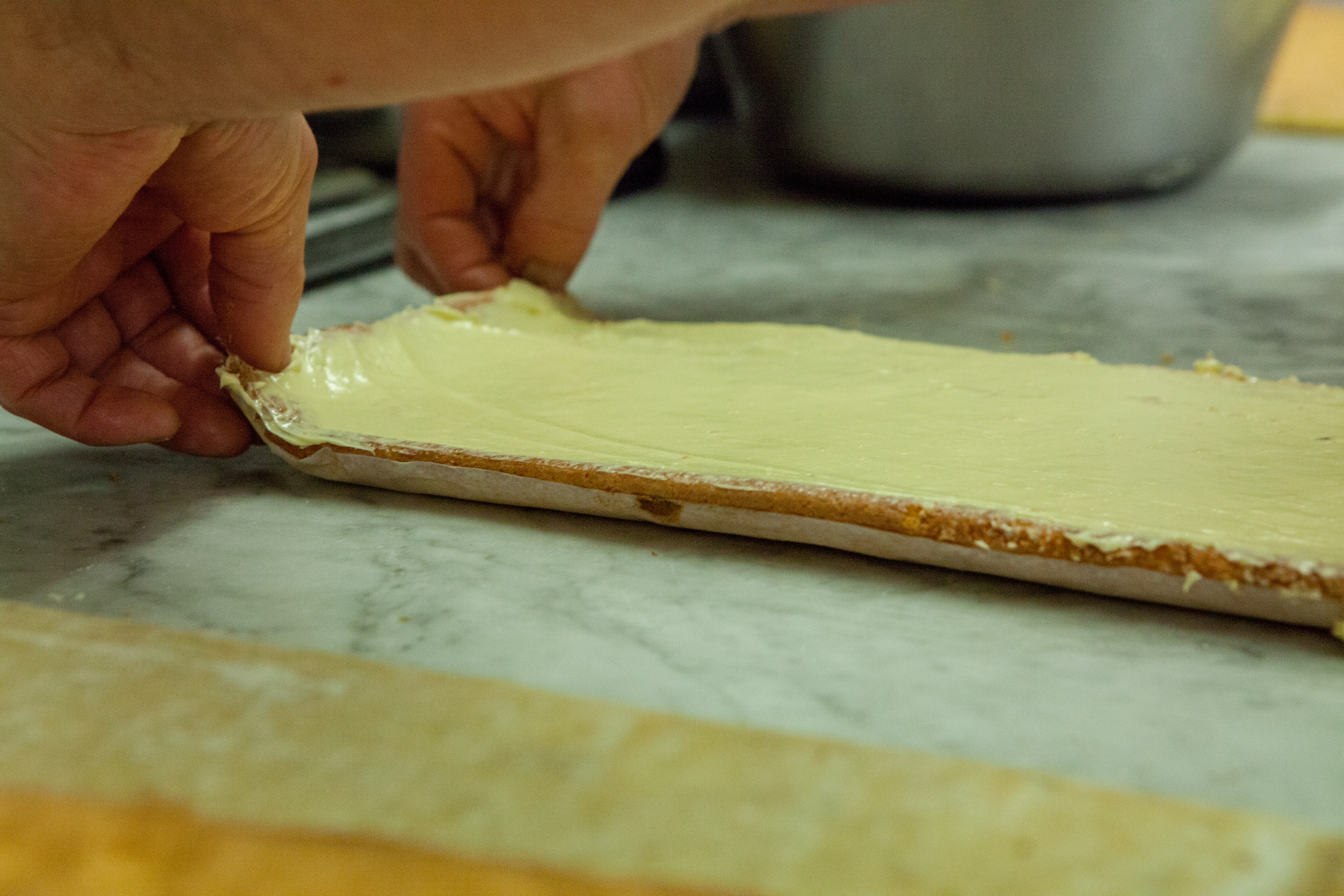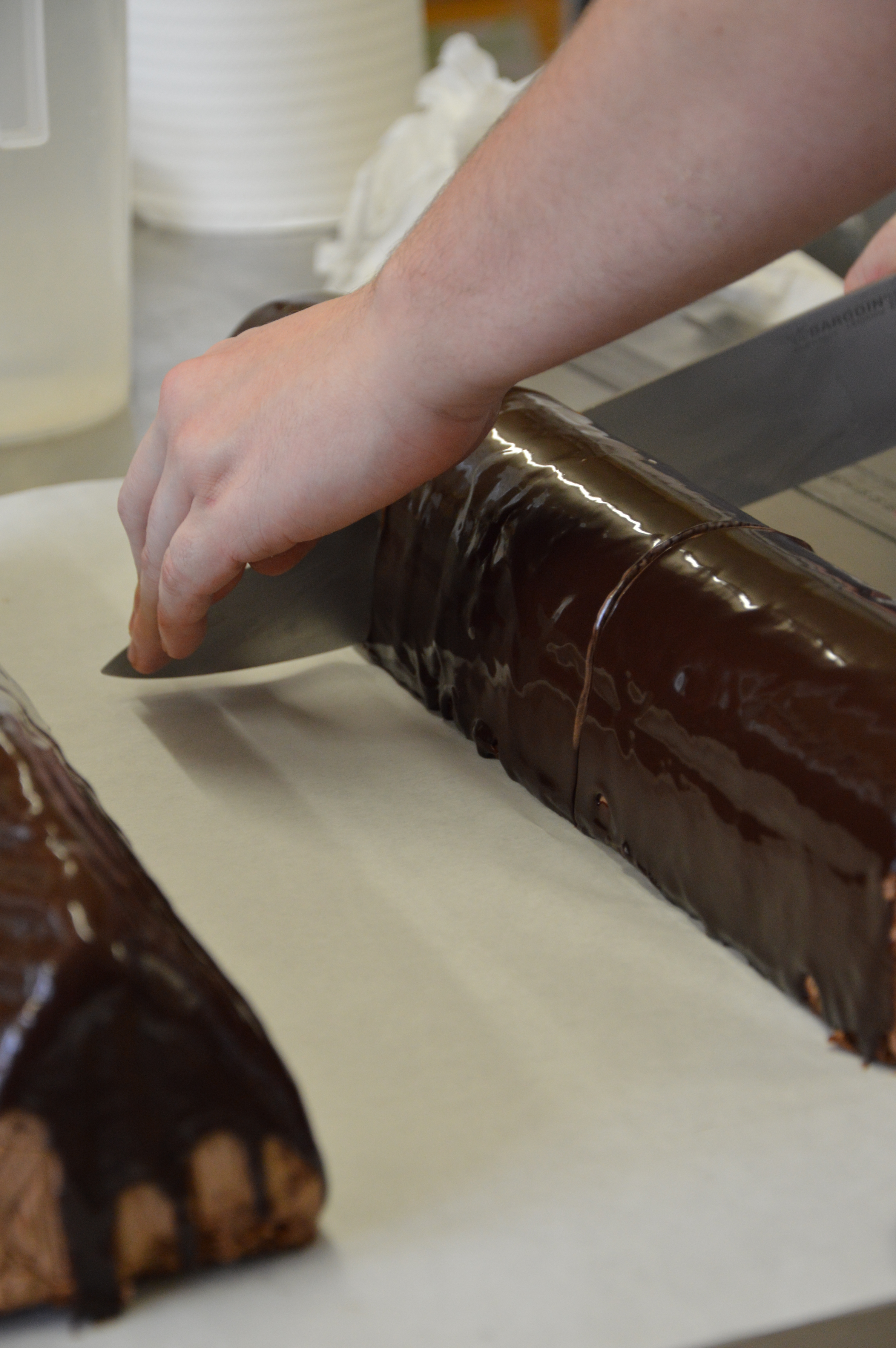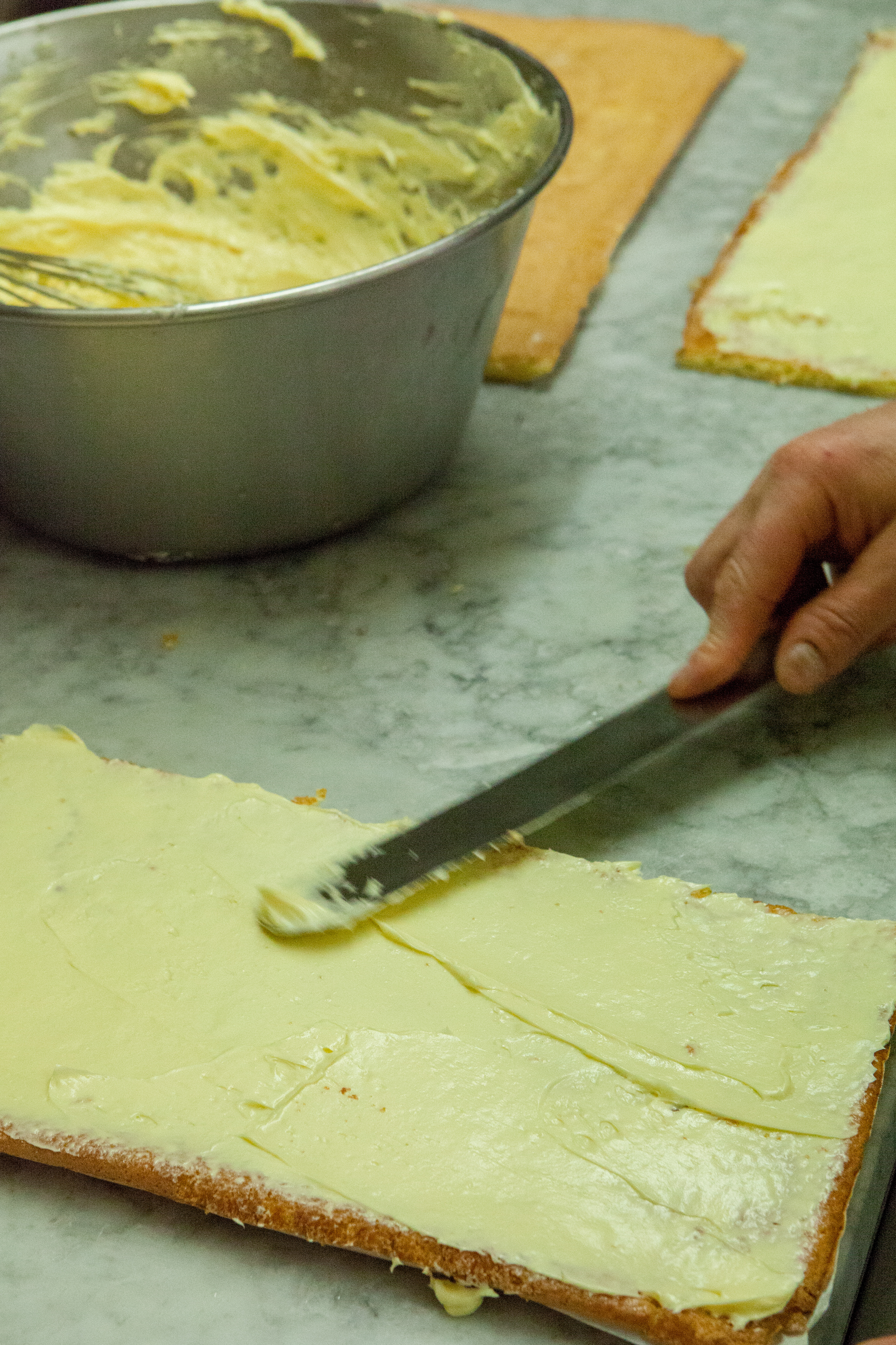 Chez Pains et Kouign nous fabriquons l’ensemble de nos produits dans nos labos de boulangerie et pâtisserie. Beaucoup d’animation et de mains qui s’y agitent en ces veilles de fêtes. Honneur à la bûche aujourd’hui et notamment la bûche crème au beurre vanille !
