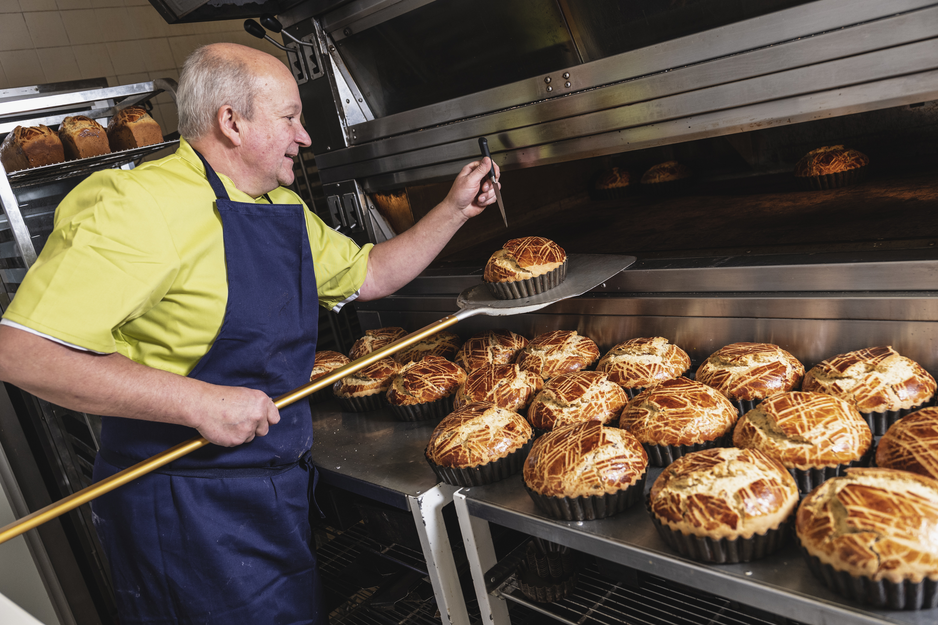 Depuis notre arrivée sur Quimper, nous avons régulièrement entendu nos clients évoquer leurs souvenirs d’enfance en lien avec le Kouign des Gras… madeleine de Proust, dites vous… Mais nous avons aussi découvert que les Nord-finistériens (Lannilis, Brest…), ou les Vannetais (St Armel notamment) ont la leur…. et nous savions que le pays bigouden contient plusieurs pépites en dehors du Kouign des Gras, comme la Miche beurré ! Quant un retraité-chercheur nous a parlé de son travail sur ces produits « spécialités boulangères occasionnelles »… nous sommes avons invités tous ces producteurs à Quimper et avons échangé sur nos produits avec les Amis du Musée bigouden et Tangy Monat de Bretagne Magazine…sans oublier Simon Cohen leur photographe plein de talents !